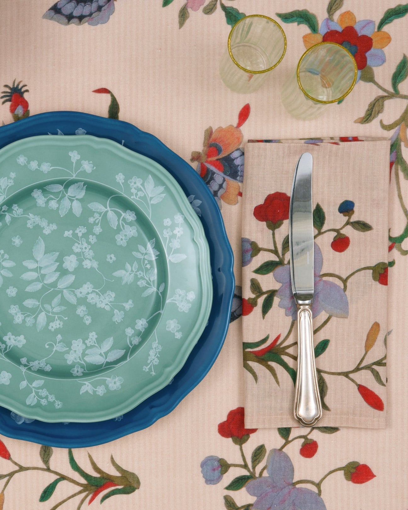 Owing to a mutual passion for interiors and true artisanal craftsmanship, together Rose, The Marchioness of Cholmondeley, and Martina Mondadori have created a tabletop collection inspired by original artefacts at Houghton Hall, North Norfolk. The collection includes table linens inspired by Rose’s 18th century hand painted silk bedroom wall covering, alongside napkins, porcelain plates and silver swans. All objects are carefully made in Italy following months of creative collaboration between the two design conspirators and friends.